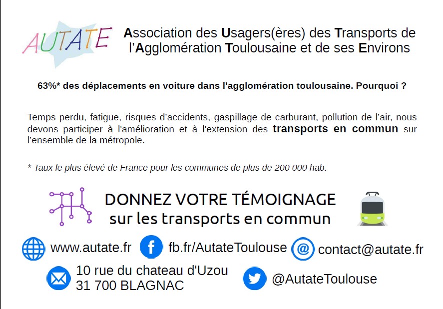 Jeudi 30 mars, nous étions invités au repas-débat de TO7, maison des chômeurs, lieu de rencontre et d’écoute à Reynerie pour présenter l’AUTATE et rencontrer des usagers. Les personnes présentes au débat étaient : -toutes usagères des transports en commun ; une personne les utilisait uniquement dans le cadre professionnel. -en majorité résidentes à Toulouse-ville. -un tiers